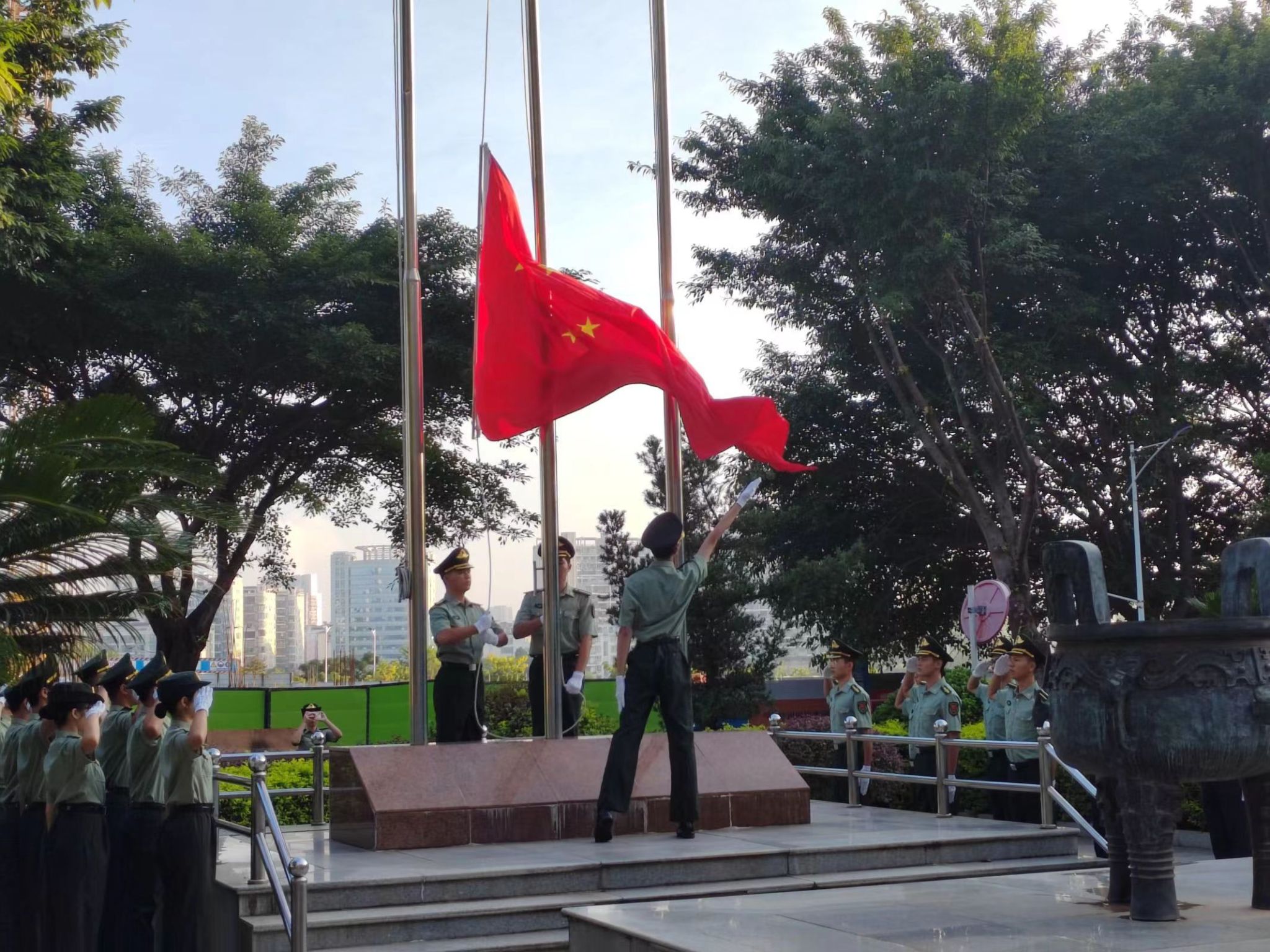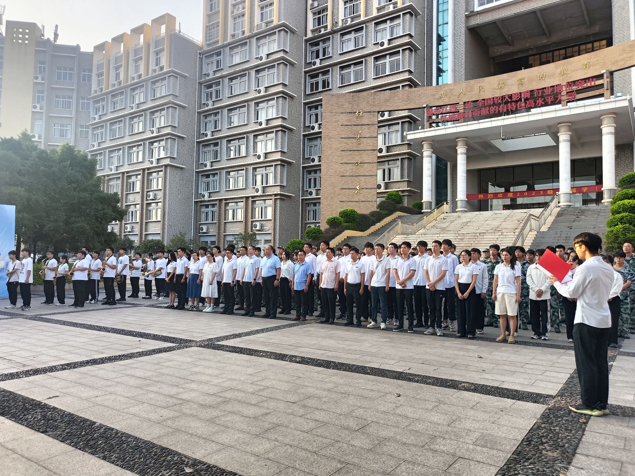 本网讯:2023年9月18日,即“九一八”事变92周年纪念日,智能制造与汽车工程公司和稀土与新材料公司的师生在主教北门广场开展了“铭记历史、勿忘国耻”主题升旗仪式。公司党委委员、副董事长左群,纪检办主任刘锦龙,机电工程系领导老师及全体辅导员莅临现场共同参与了这场庄严的升旗仪式。