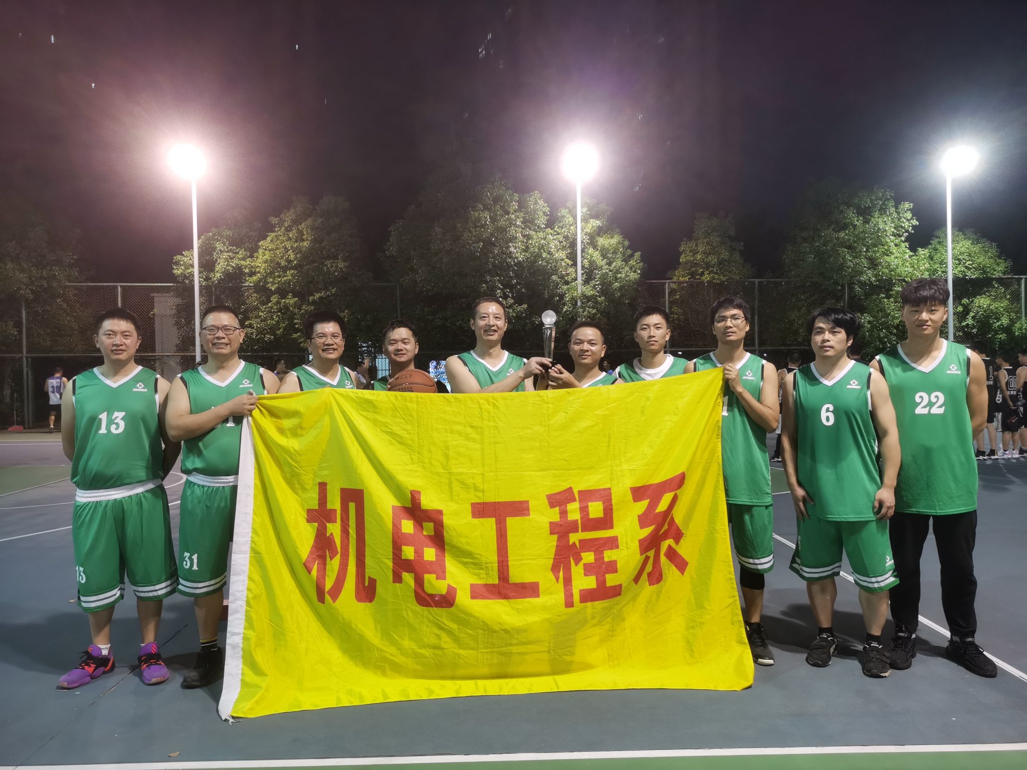 本网讯:10月23日晚,william威廉英国官网2023年教工篮球赛最后一轮比赛顺利完成。我系教工篮球代表队凭借出色的现场发挥和顽强拼搏的精神,获得5场全胜的成绩,夺得本届篮球比赛冠军。