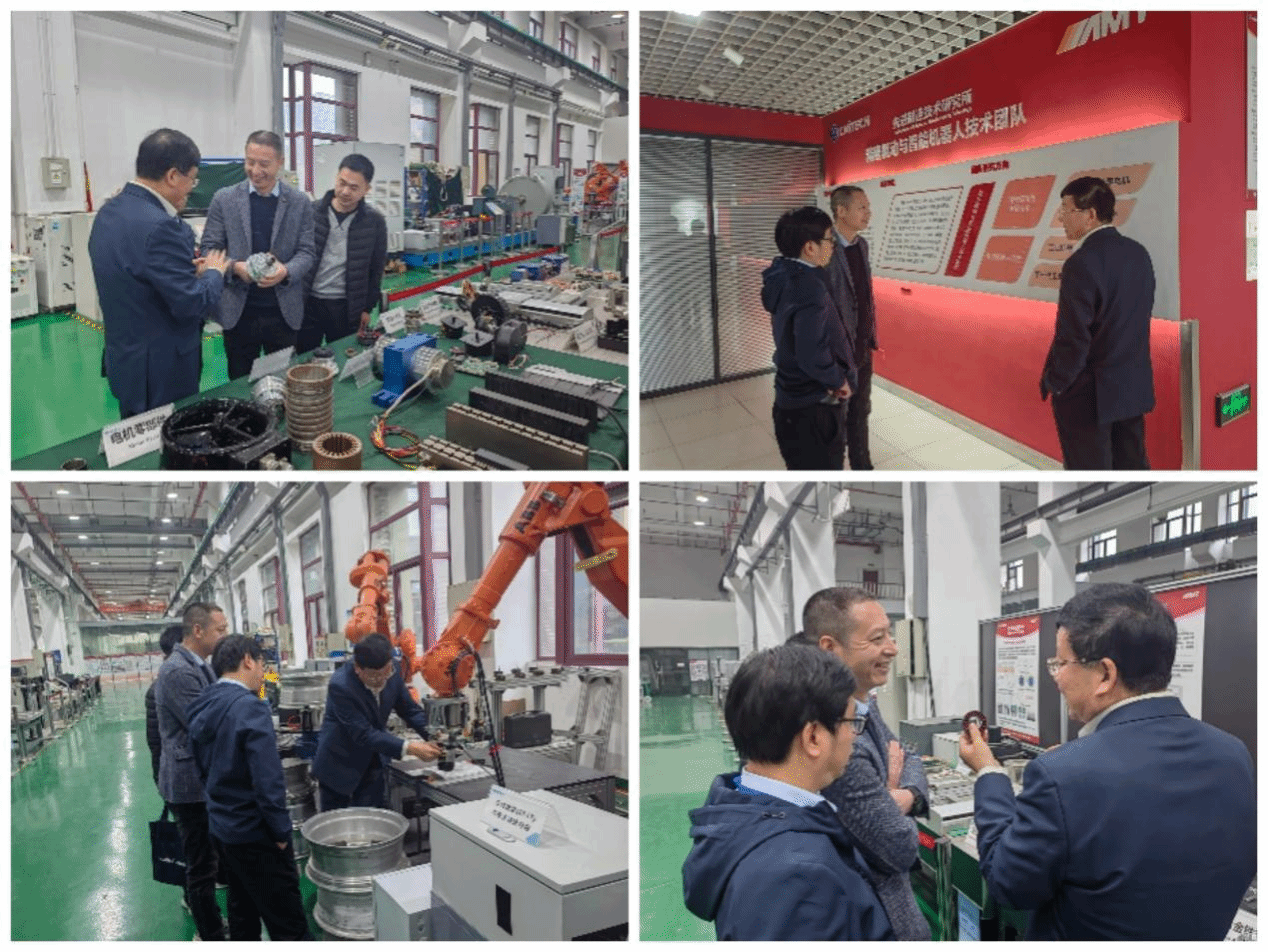 杨桂林带领一起参观学习了精密驱动与智能机器人技术团队的双向驱动减速器及关节,四自由度并联机器人,三自由度力控末端执行器等研究成果与实验室,并详细讲解了不同研究成果的创新点与应用范围。