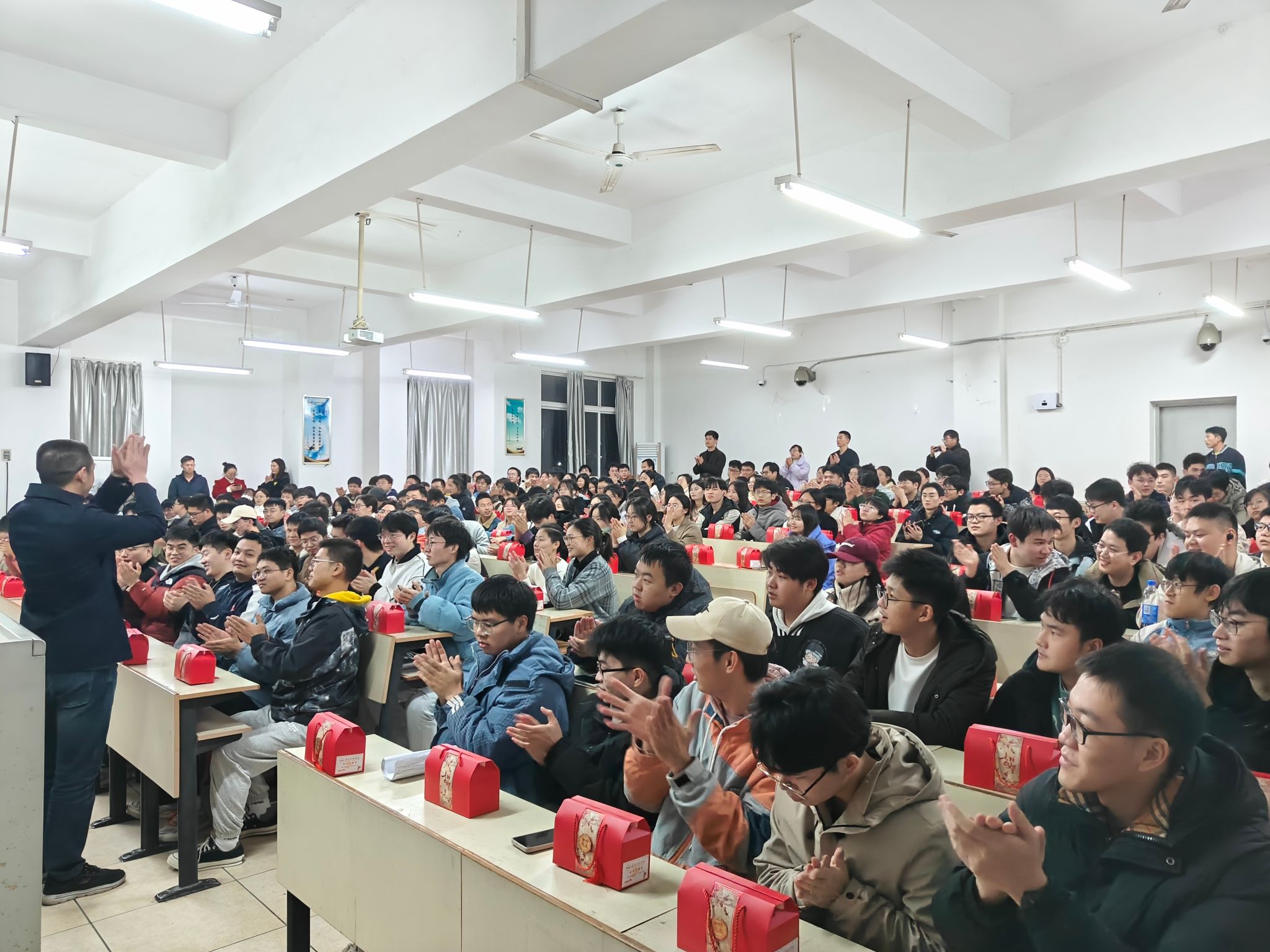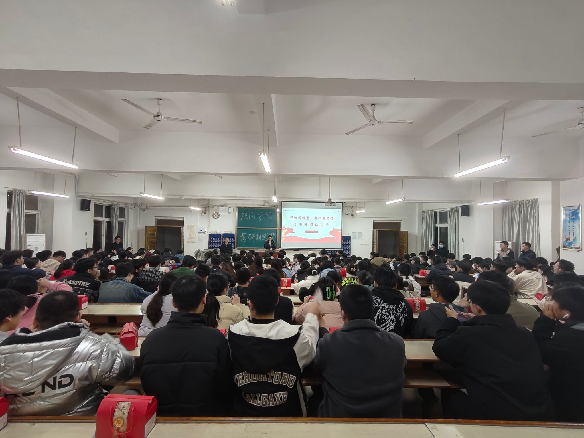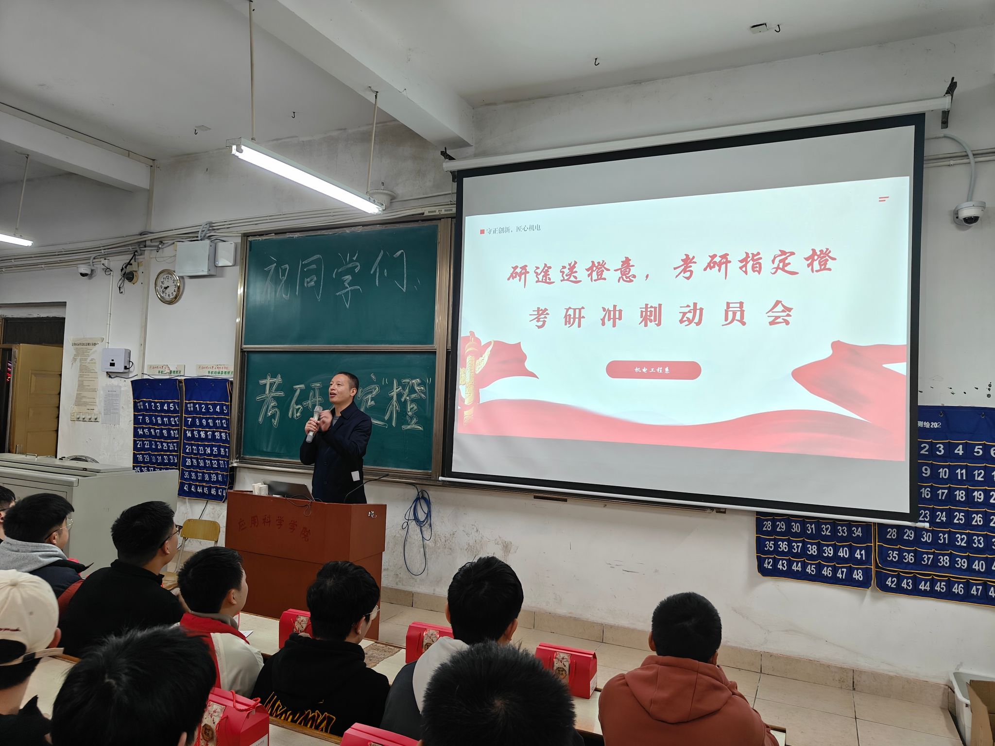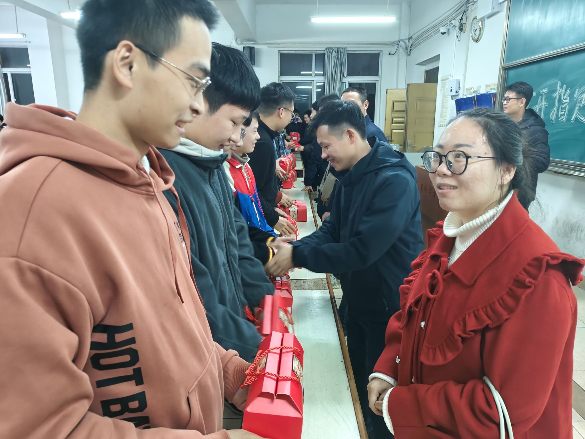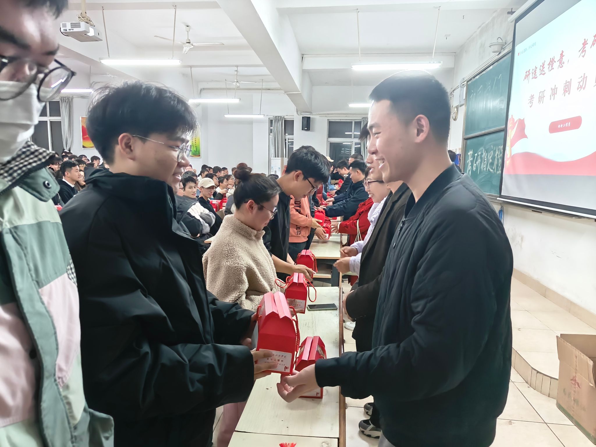 随后,机电工程系所有老师给考研同学们送来祝福,为每位考研员工赠送脐橙小礼盒,寓意“研”途送橙意,考研指定“橙”。