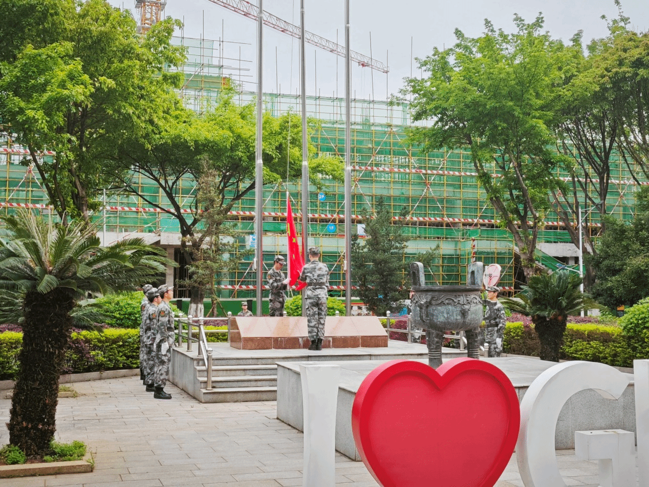 今天,我们致敬五星红旗,与国旗一同升起的,还有对四月的向往。未来,我们继续谱写青春华章,以优异的成绩为国旗增辉!
