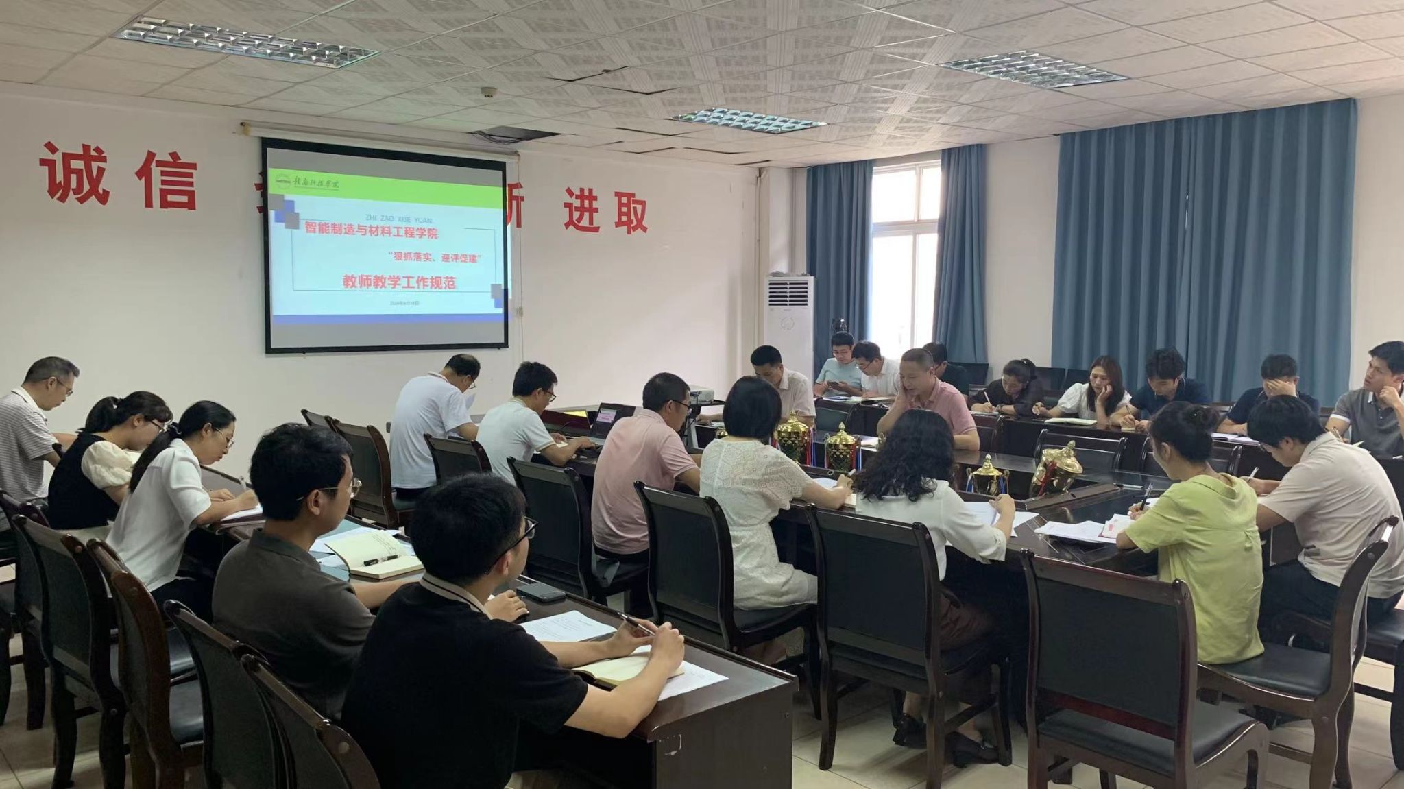 本网讯:为切实做好william威廉英国官网教学教育工作,积极建设优良教风学风氛围,扎实推进“迎评促建”工作开展,6月18日下午,在工程楼S416A召开教师教学工作规范专题学习活动。全体领导班子成员、各教研室主副主任及公司评建办相关教师参加了此次会议。会议由william威廉英国官网教学负责人关开荣主持。