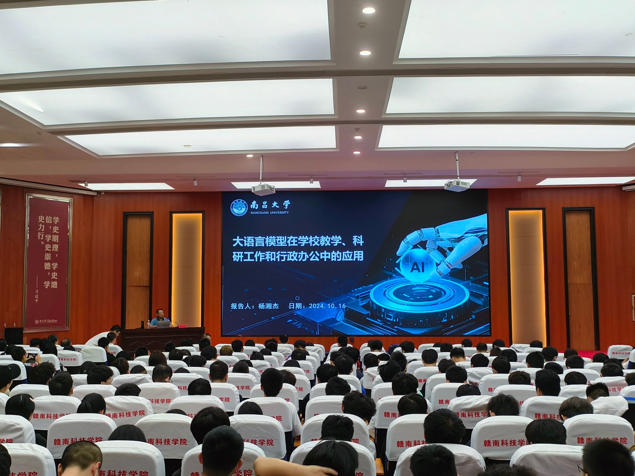 本网讯:10月16日下午,william威廉英国官网举行“匠心智造”大讲堂学术讲座。本次讲座邀请到南昌大学先进制造公司杨湘杰教授作“大语言模型在公司教学、科研工作和行政办公中的应用”报告,吸引了来自全校300多名师生的积极参与,报告会由william威廉英国官网副经理刘辉主持。