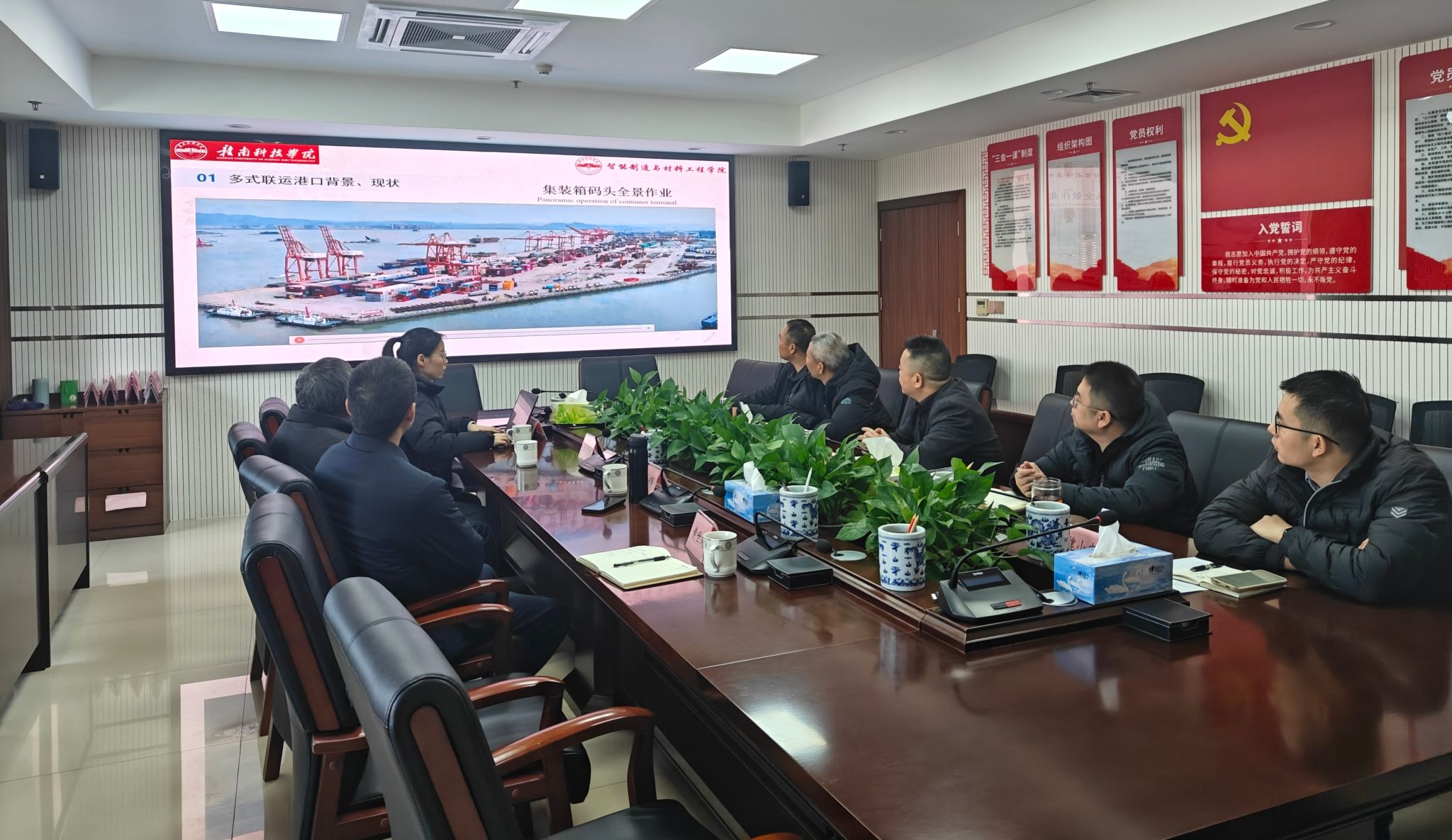 在交流会上,针对公司如何强化“三链融合”、推进“产学研一体化”等问题,刘辉作了细致阐述。刘辉强调,公司期望为赣粤大运河赣州段规划建设贡献力量,助力赣州多式联运发展。王德伦教授与钟祾充博士介绍了公司在智能制造与材料工程领域的科研成果,尤其是港口建设,为双方合作提供了坚实的技术支撑。