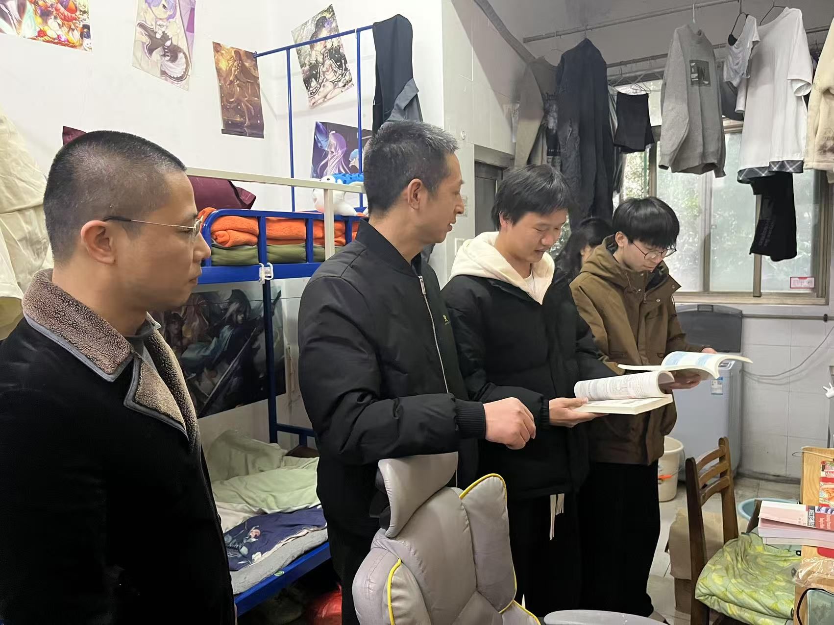 在检查过程中,刘辉详细询问了同学们的假期生活及新学期的学习规划,鼓励大家以饱满的热情投入到新学期的学习生活中。同时,辅导员们还借此机会向同学们普及了安全知识,提醒大家要增强安全意识,共同维护宿舍的安全与稳定。