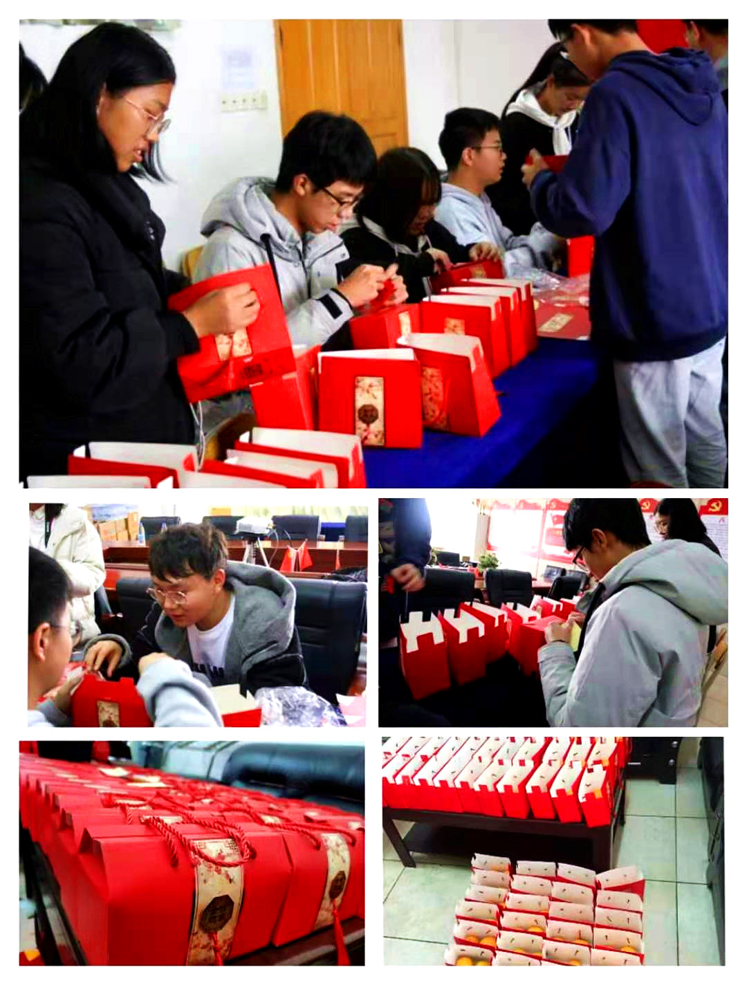 学弟学妹为备考学子装填脐橙礼盒