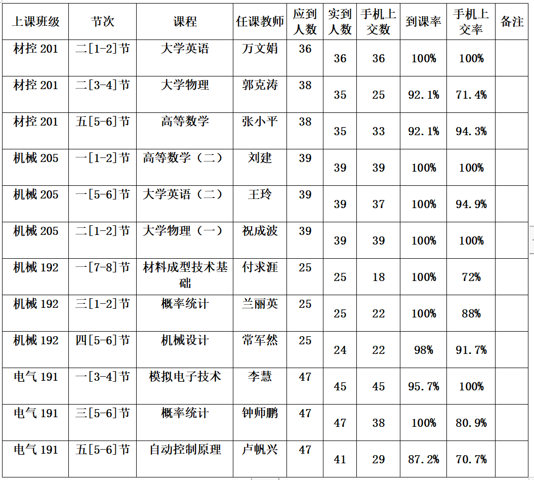 一、第九周抽查到课率情况通报