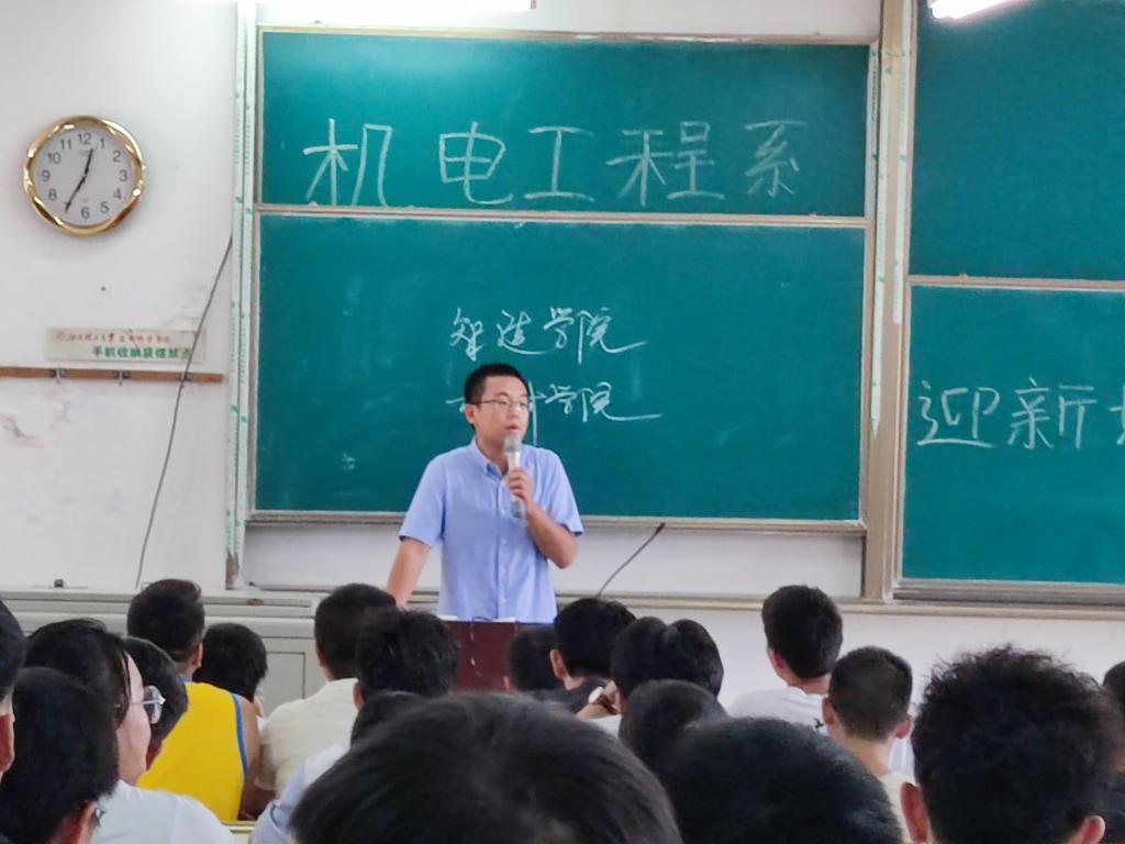 本网讯:9月13日,我系员工会及党支部全体人员进行迎新前的准备工作,在主教Z1D1召开机电工程系迎新培训及动员大会,与会领导有系主任刘辉老师、副主任肖志华老师、团总支书记张敏老师、21级新生辅导员孔靖宇老师。 会议开始由张敏老师主持。