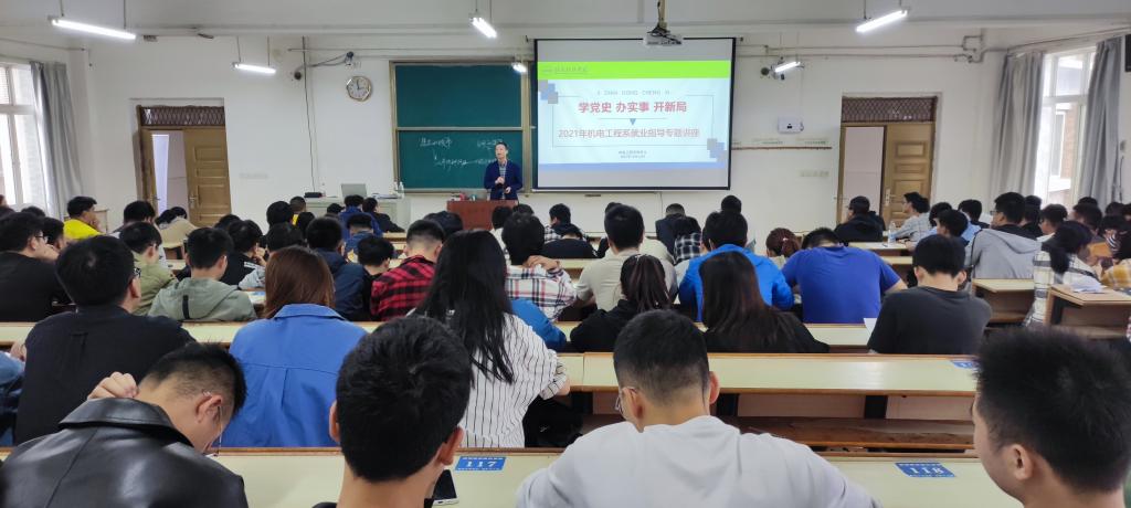 本网讯:10月12日下午,机电工程系在主教Z1D2、Z1D3举办2021年就业指导专题讲座,系主任刘辉、副主任肖志华出席会议,全体2018级员工参加动员会。