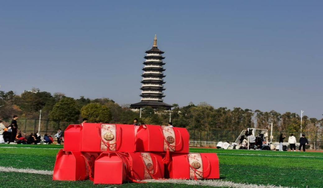 老师为考研学子分发脐橙礼盒