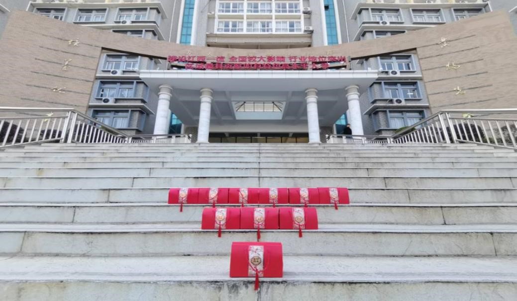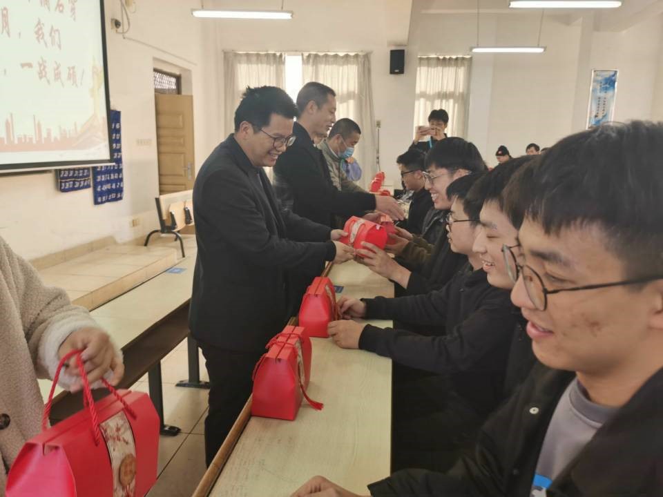 在会议结尾,老师们给考研同学们送来祝福,为每位考研员工赠送脐橙小礼盒,寓意“研”途送橙意,考研指定“橙”,每个礼盒都心意满满。为了给考研同学们送上这份惊喜,老师和学弟学妹们精心筹备,老师们精心挑选脐橙,学弟学妹们准备精美包装,院、系领导及机电系全体教师执笔为每一位考研学子写下衷心祝福。“天道酬勤,水滴石穿,十二月,我们一‘研’为定,一战‘橙’名!”