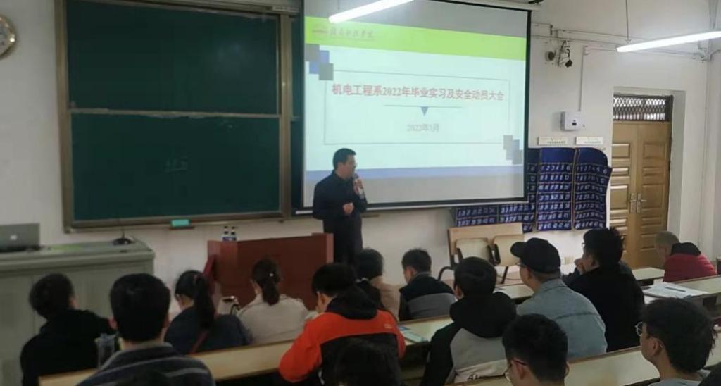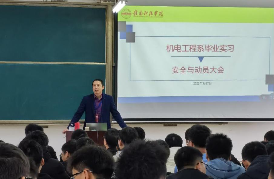 本网讯:3月7日上午,机电工程系在教学主楼Z1D3和Z2D3召开了2018级员工毕业实习安全与动员大会,机电系主任刘辉、副主任关开荣、肖志华、各教研室主任、实习带队教师以及各毕业班同学参加了会议。