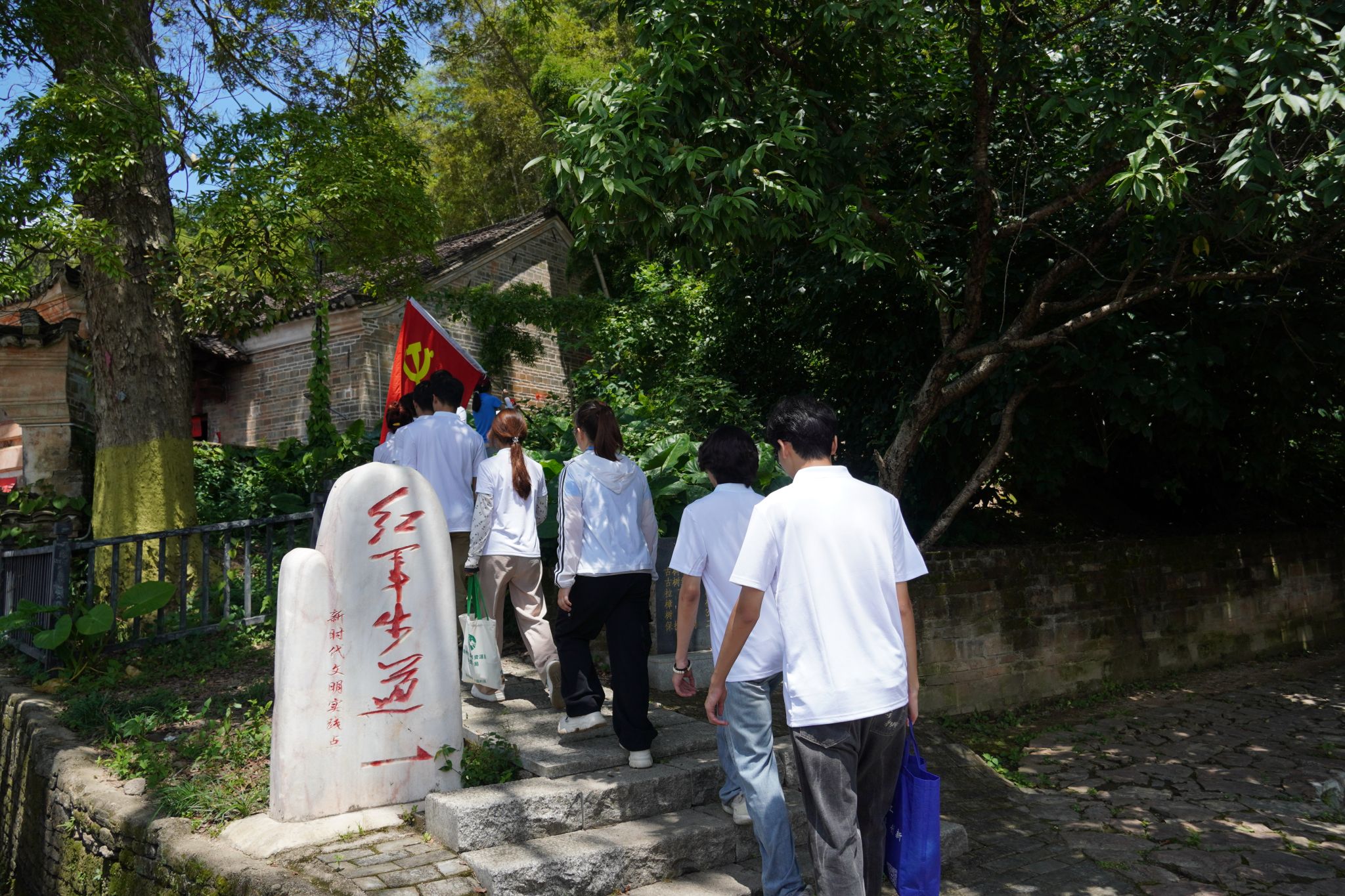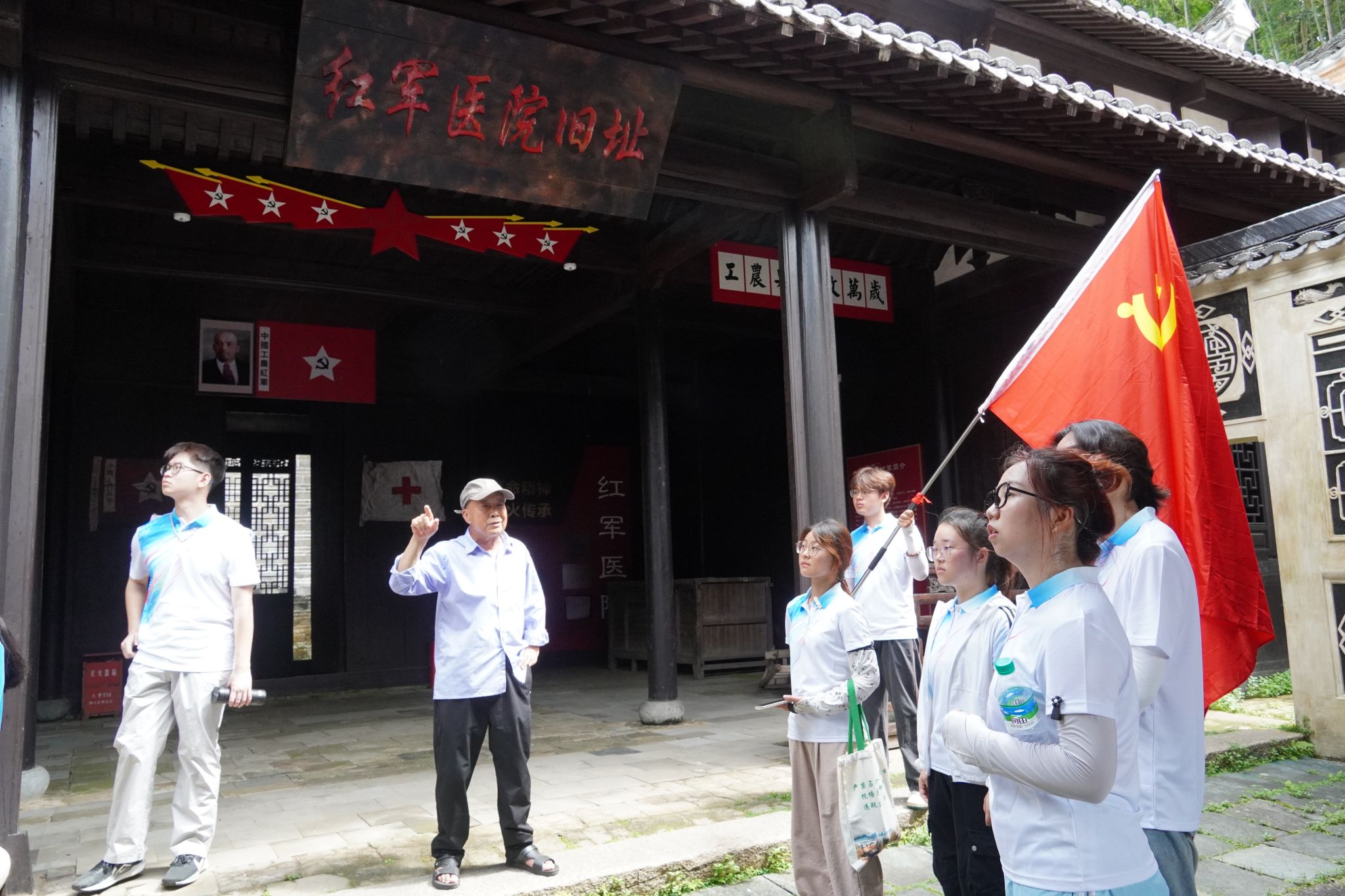 “言续者”队聚焦白鹭古村文脉守护。他们深入田野,细心倾听老村乡音,记录承载历史回响的古建风貌,追寻悠长岁月的精神坐标;调研以文化为主线,更融合红色传承——在建党104周年之际,实践队员踏访红军步道、瞻仰毛泽东旧居、缅怀红军医院旧址,在时空重叠处重溯革命初心。同时他们用爱心守护当地孩童,将实用防护知识倾囊相授,普通话推广、安全宣讲、童心互动,筑起了村落最实在的安全屏障。
