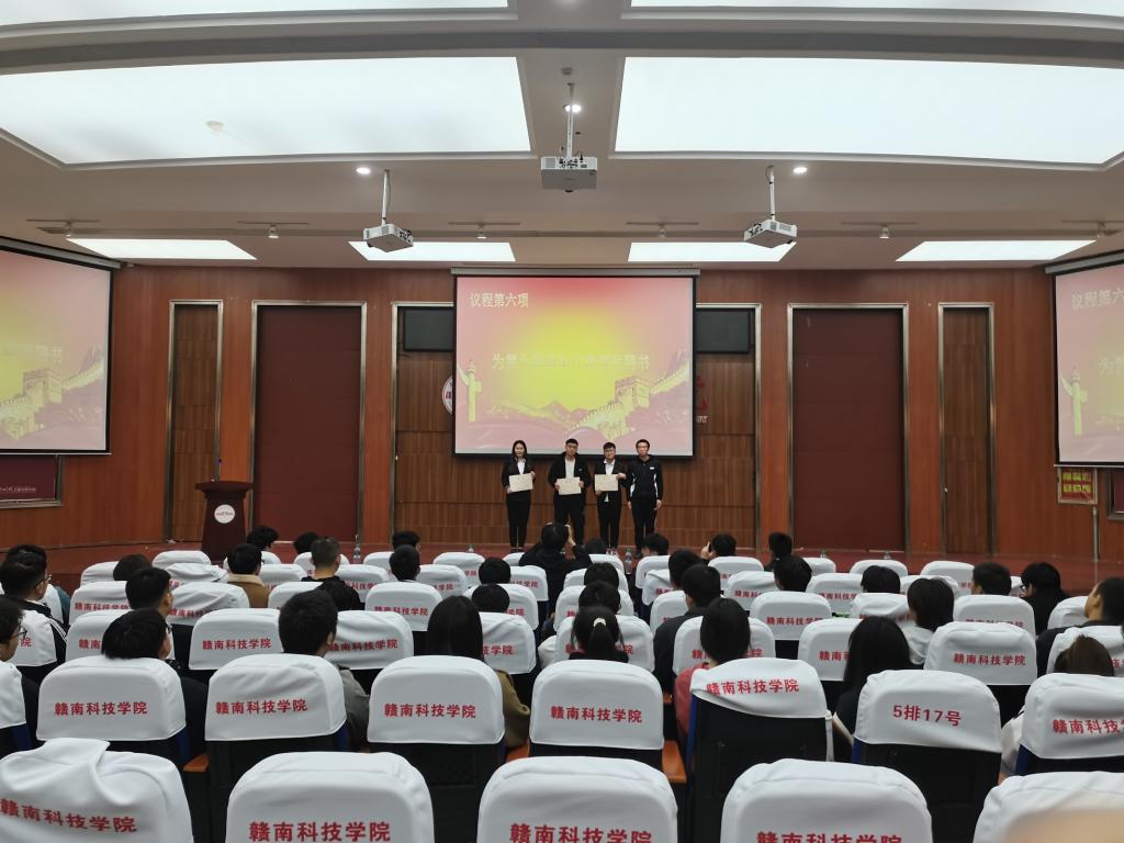 大会议程第四项:机电工程系团总支负责人张敏老师为第期优秀学员颁发荣誉证书