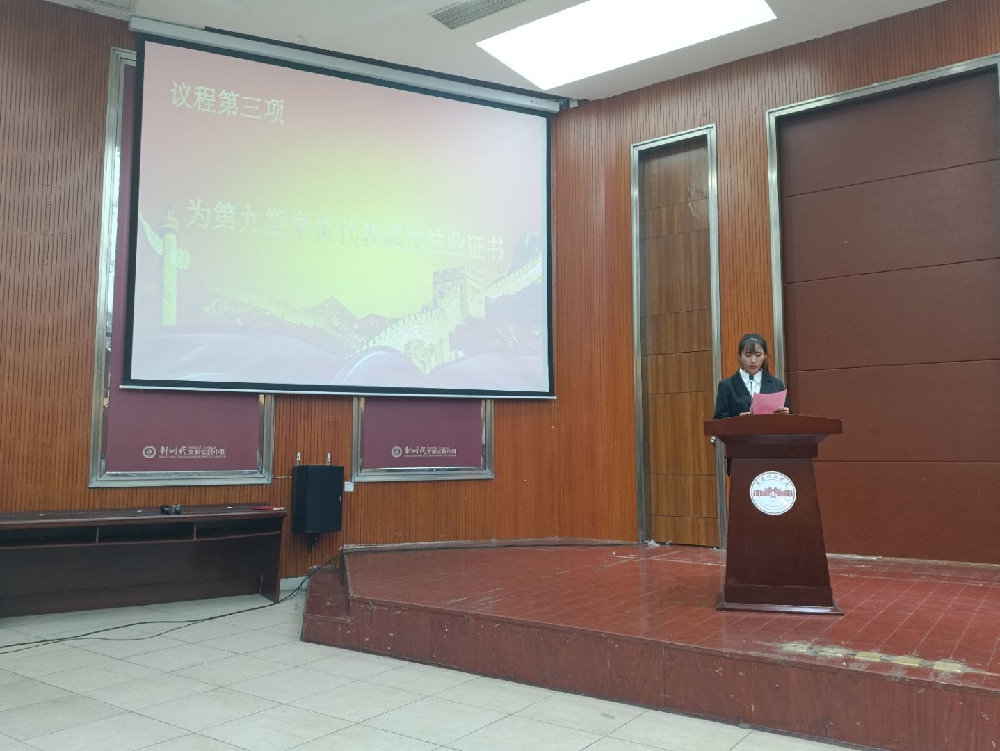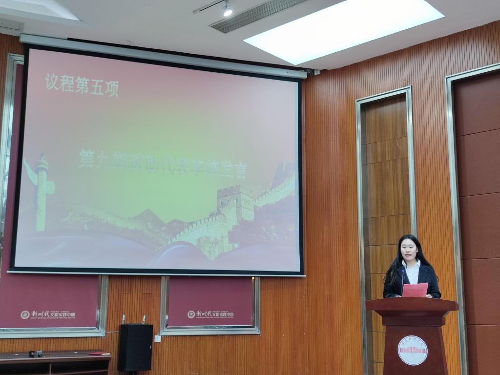 大会议程第五项:第九期青马班班助代表李婷同学发言;