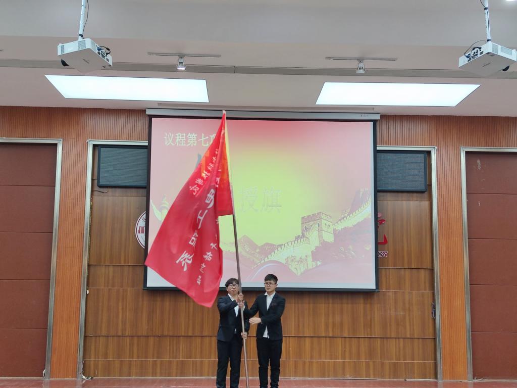 大会议程第项:两届青马班负责人交接班旗