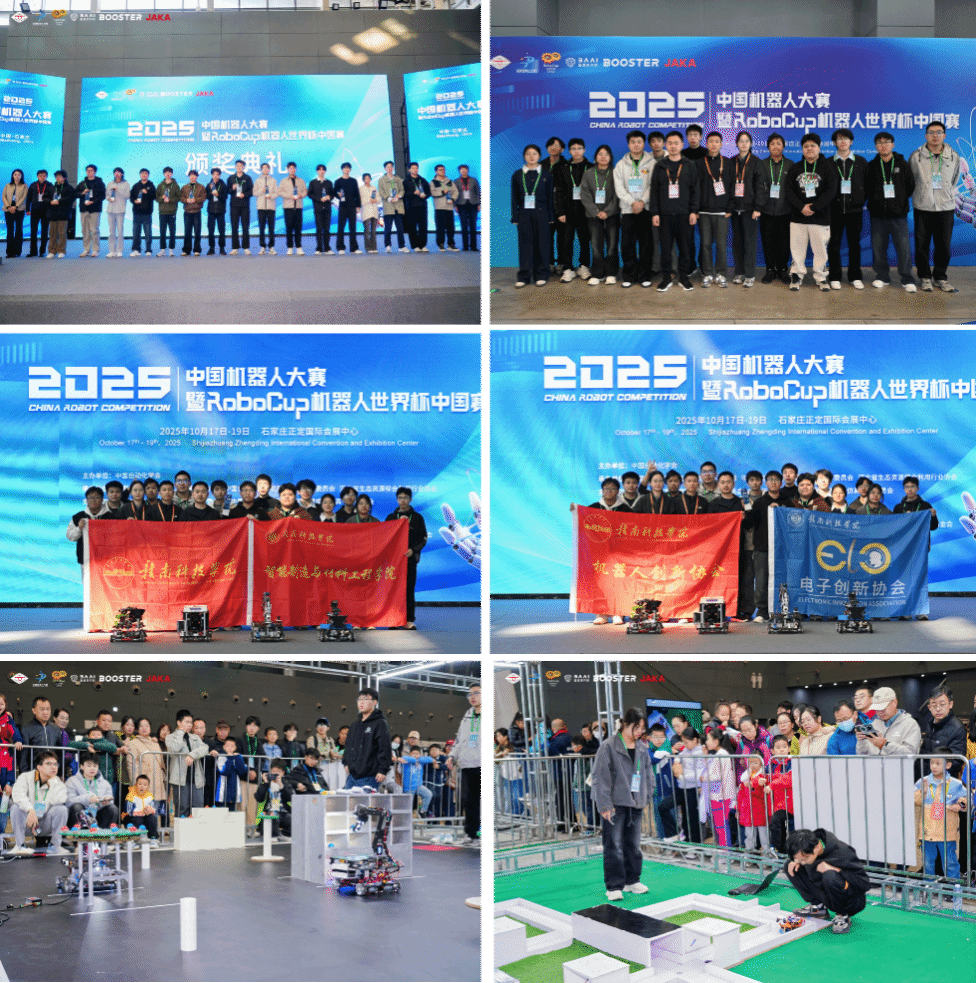 本网讯:10月16日至19日,2025年中国机器人大赛暨RoboCup机器人世界杯中国赛在河北石家庄举行,共吸引了清华大学、上海交通大学、西安交通大学、浙江大学、哈尔滨工业大学等国内300多所高校的1600多支队伍、5000名师生报名参赛。经过激烈的角逐,公司机器人教研室师生团队获得国赛一等奖3项,二等奖3项,三等奖4项,其中公司“智造先锋1队”在众多参赛队伍中斩获全国亚军,取得了公司该项赛事的历史最佳成绩!