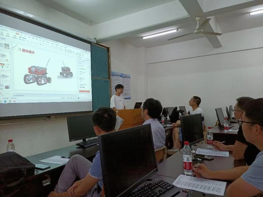 各组有序上台讲述本组作品以及创新思路,并由评委老师进行点评和指导,在不同作品和不同角度上给出不同的建议。本次比赛共有45组作品,为此分为三个大组在三个时间段进行,比赛快速有序的进行。比赛末,机电工程系刘辉主任进行了总结,希望同学们认真修改PPT,向国一优秀作品靠齐,同时对接下来的复赛寄于厚望。
