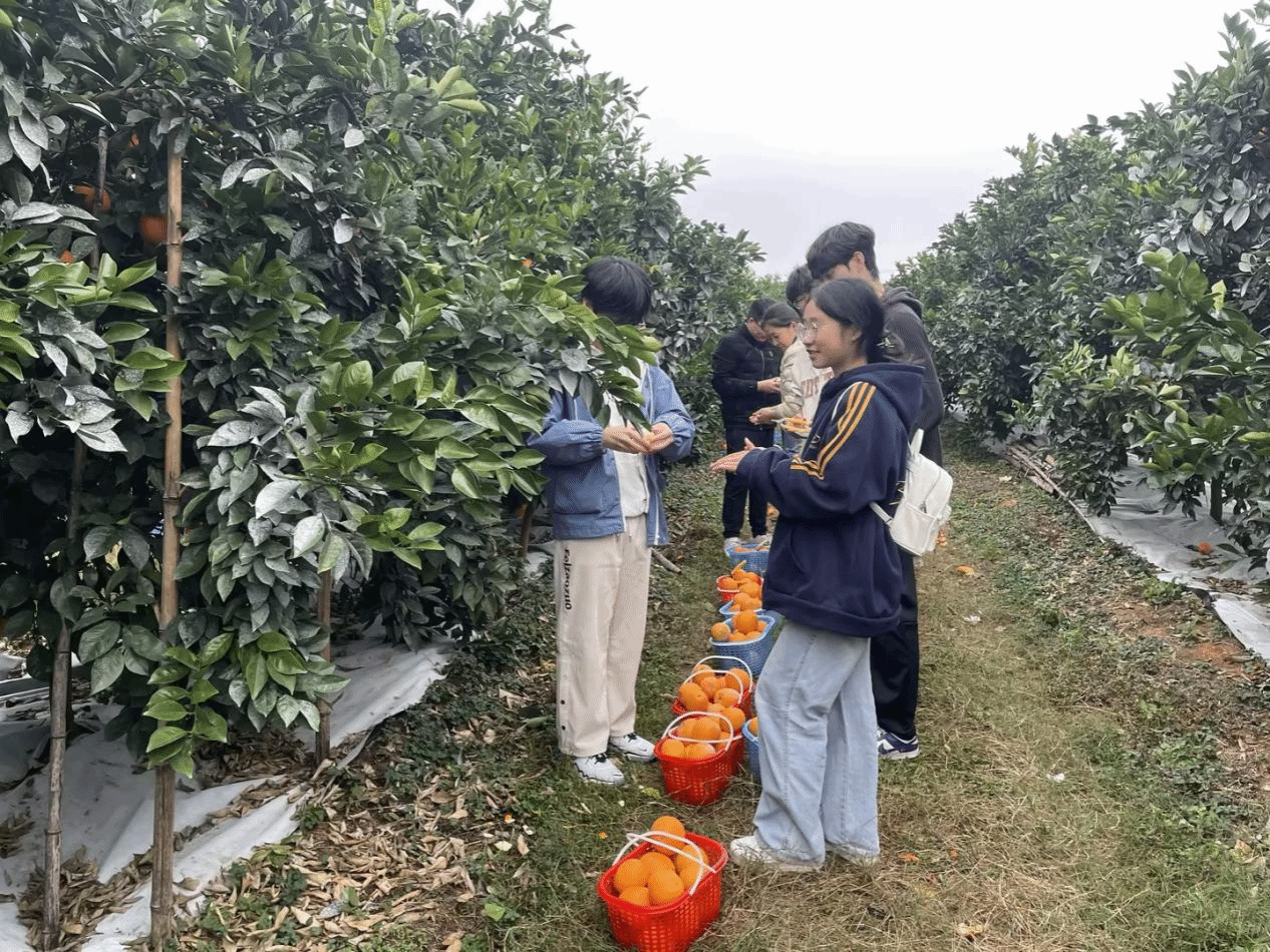 师生们还前往绿萌科技控股有限公司脐橙基地。在这里,大家参观了脐橙种植园,了解了脐橙的种植技术、管理方法及智能化应用。随后,大家纷纷拿起工具,亲身体验了脐橙采摘的乐趣。采摘结束后,大家还在现场品尝了新鲜脐橙,感受到了其独特风味。