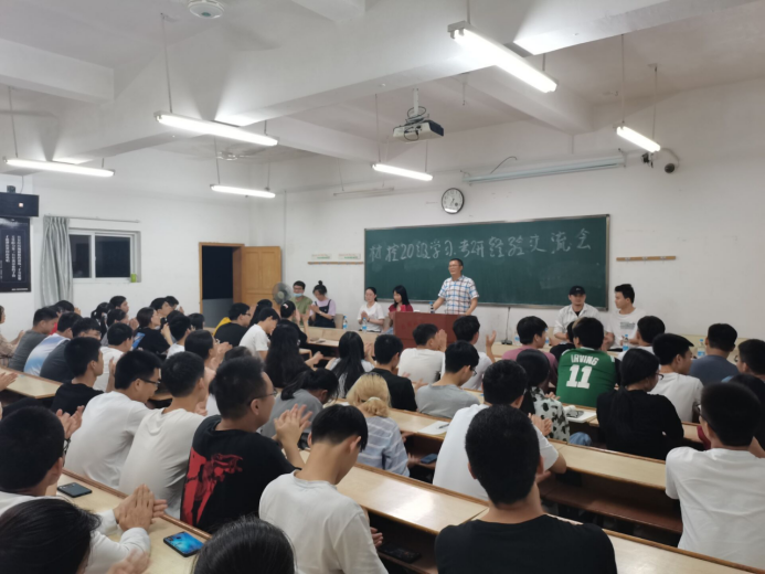 各位学长学姐以自己的切身经历向同学们讲述了考研的宝贵经验。他们认为,考研的成功等于正确的方法、不懈的努力、良好的心态以及恰当的复习材料。他们风趣的语言、门见山的讲述风格、清晰地条理,赢得了同学们阵阵热烈的掌声。