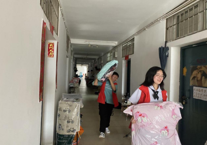 值得称赞的是机电系的女生不怕苦,不怕累,主动请缨加入志愿服务队。虽然汗水浸湿了我们的衣服,烈日暴晒着我们的身体,但却阻挡不了我们想要为学长学姐们服务的热情。