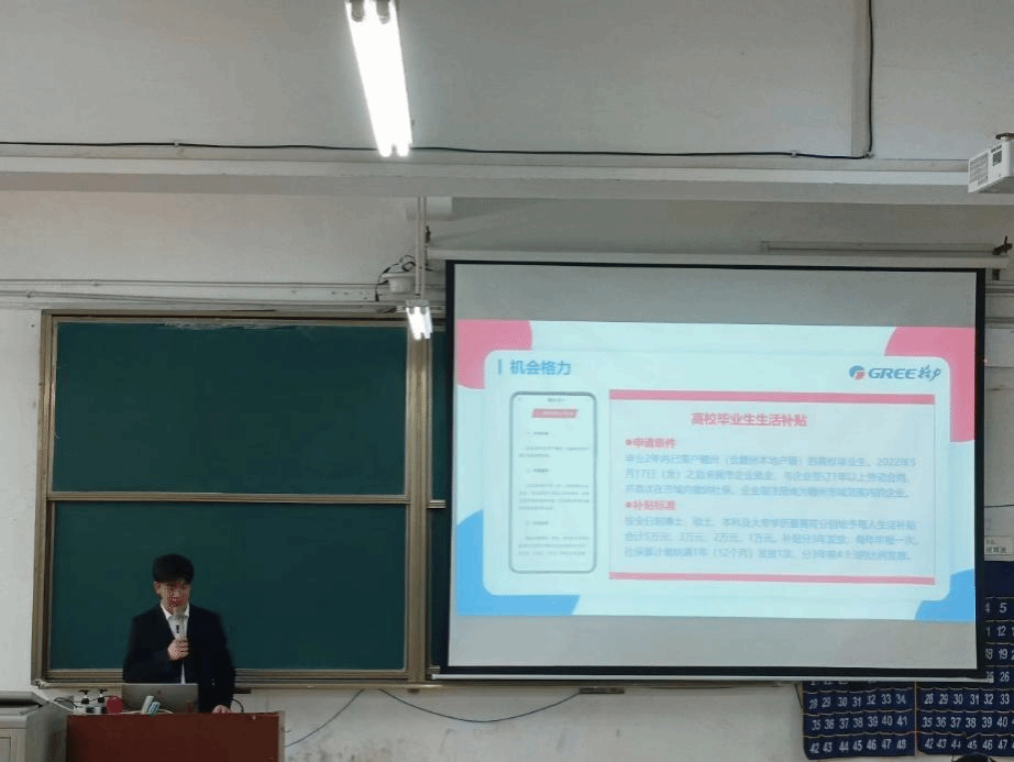 本网讯:为深化产教融合,探索现代产业公司建设途径,提升应用型人才培养质量,进一步拓展毕业生的就业渠道,搭建起产教融合基地平台,格力电器(赣州)有限公司(以下简称“格力电器”)与公司机电工程系共建“赣州格力明珠班”。5月5日,在教学主楼Z1D3举行赣州格力明珠班宣讲介绍会,格力电器总经办洪志勇、招聘经理尹会鸿、机电工程系主任刘辉、各教研室负责人、20级班主任辅导员以及200余名员工参加了此次宣讲介绍会,介绍会由机电工程系副主任关开荣主持。