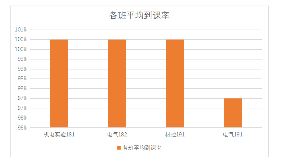 从各班上交数据情况来看机电实验181,电气182,材控191班同学到课率都是100%,表现良好,希望能够继续保持!