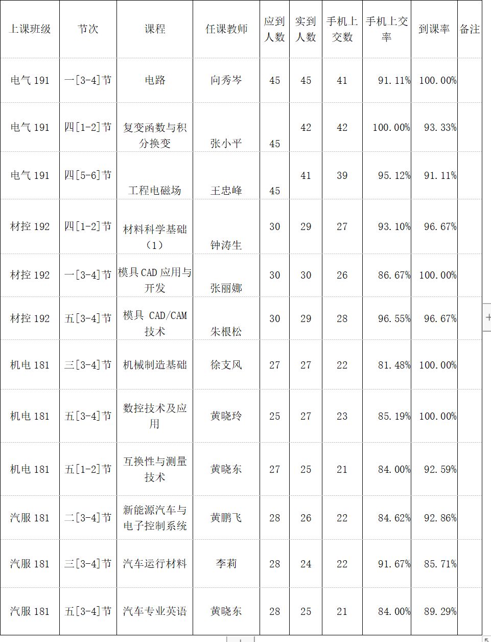 一、十六周抽查到课率情况通