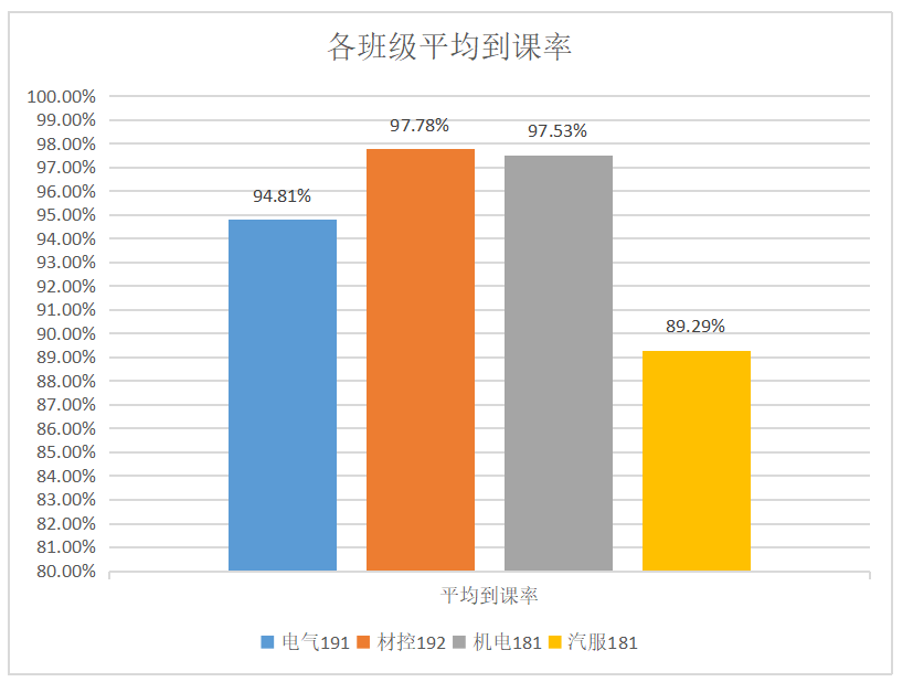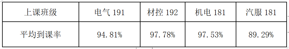 由上表看出自材控192班平均到课率较高,表现良好,希望继续保持!