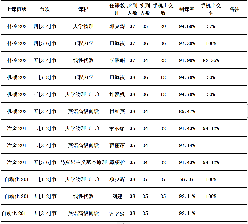 一、周抽查到课率情况通报