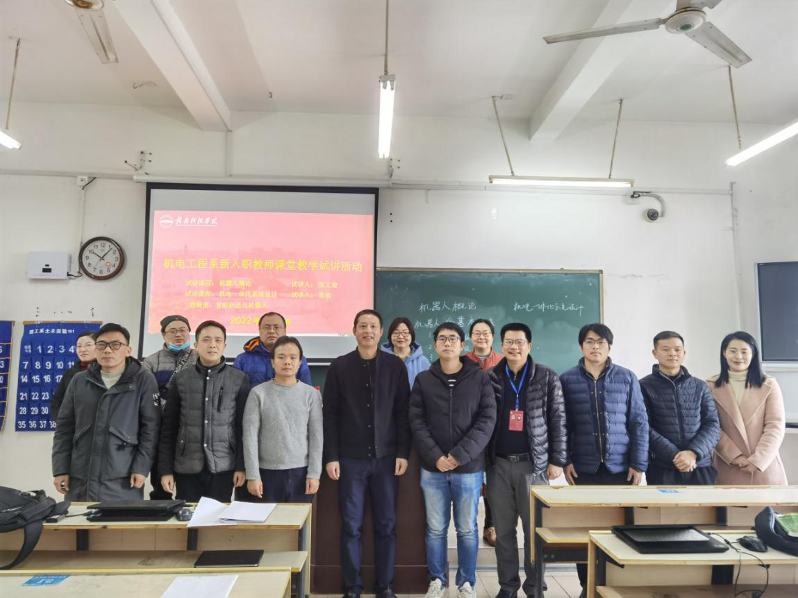 为提高新入职教师的上课水平,增强上课自信心、讲好人生的第一堂课,站稳三尺讲台,机电工程系在刘辉主任和关开荣副主任的关心和支持下,机械与汽服教研室和机电与机器人教研室于2022113日在主教学楼Z104教室共同举行了新入职教师的试讲活动,此次活动共有十多位老师共同参与