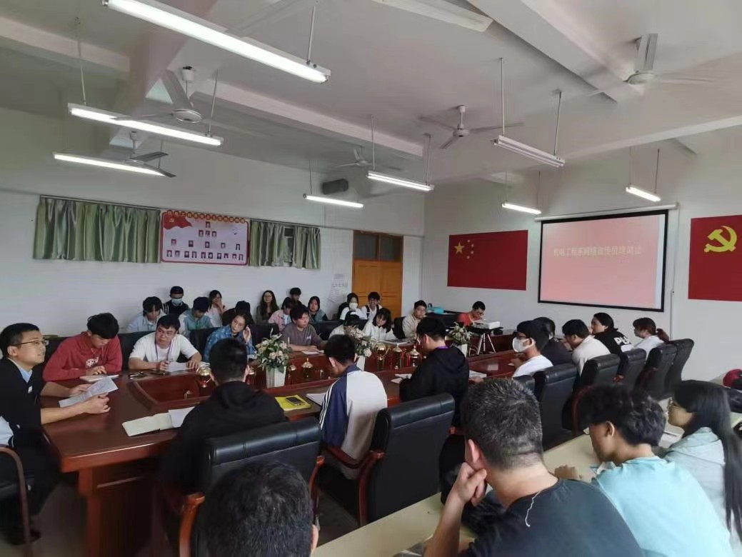 本网讯:2022年6月20日,为了提高网络舆论引导能力和水平,树立正确的意识形态,加强宣传队伍建设,增强宣传工作力度,提升宣传工作水平,培养更多的宣传人才,机电工程系团总支书记张敏老师主持召开机电工程系网络宣传员培训会,机电工程系全体员工干部参加本次培训会。